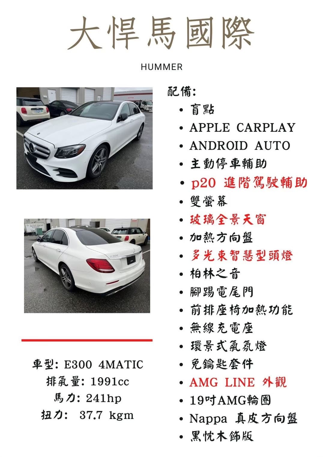 / (已售出)2018/19年 P20小改款E300 AMG 4Matic